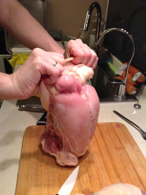Then of course you want to skin it. I’ll tell you in a minute how to make crispy chicken skin snacks.